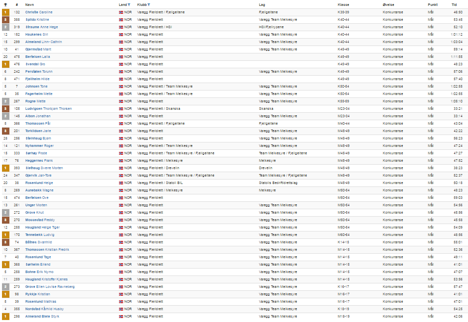 Vareggtroppen viste godt igjen i feltet. Farten var imponerende, og smilene satt løst når sølen skvatt. 7 Vareggløpere sikret seg klasseseier. Spesielt gledelig var dobbelseieren til Erlen Sørheim og Kristian Rykkje i Gutter 16-17. Spenst fenomenet Styrk Almeland Bleie taklet både terreng og det unaturlig valget av distanse. Han reiste hjem fra Fyllingsdalen med seier i Gutter 18-19.