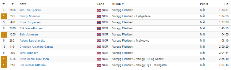 Listen nedenfor viser at vareggløperne bet godt fra seg også på den halve distansen. Listen mistenkes å ikke være helt komplett.