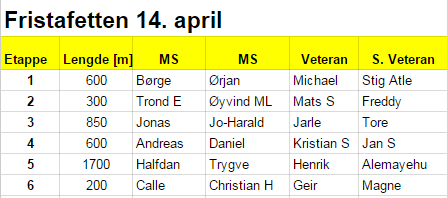 Fristafetten - første laguttak