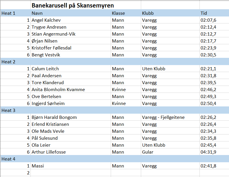 Angel Kalchev slo an tonen direkte fra start i det første heatet. Calum fulgte opp med samme offensive løpingen i heat nummer to. I heat nummer tre var det kamp helt til målstreken. Gamleguttene smilte og publikum applauderte. Det ble tre fulle heat og ett fjerde heat for to blide etternølere. Mange overrasket seg selv på den uvante distansen. Strålende levert!