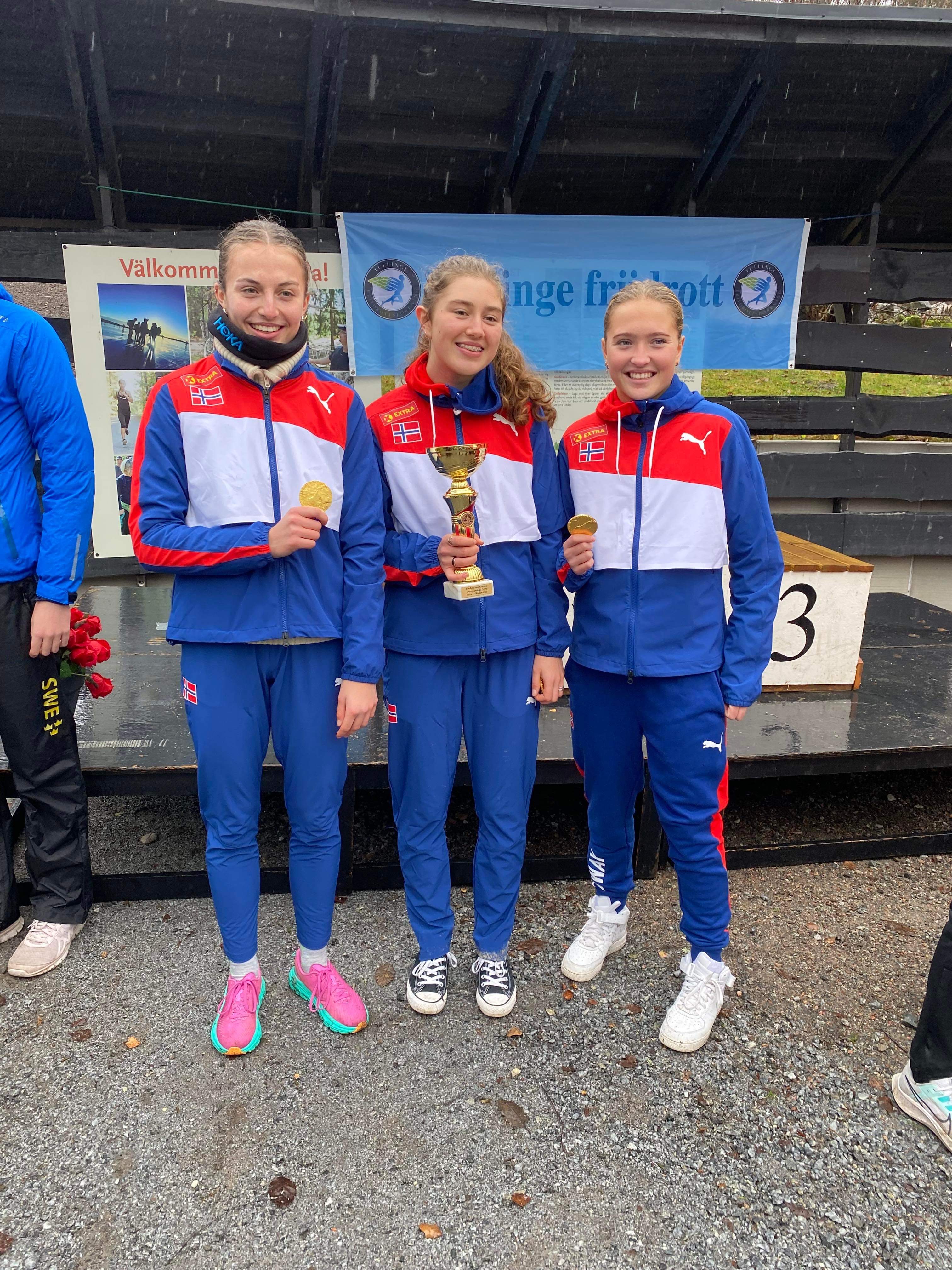 Det norske juniorlaget for jenter vant i nordisk mesterskap i terrengløp i svenske Tullinge på søndag.