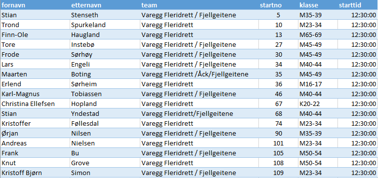 Følgengede 17 løpere er å finne på startlisten fredag:
