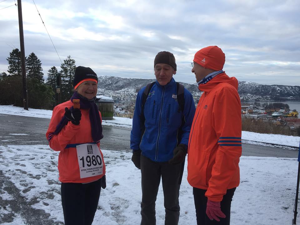 Status fra løypen var at løperne fikk fast og fint snøføre. I noen partier var stien med fast underlag en tanke smal. Vinterkledde omgivelser gjorde ellers turen lys og trivelig. Unge Erlend hadde merket løypen fredag. Et trevelt og hensynet til skiløpere, krevde litt improvisasjon. Alle måtte løpe 75 meter lenger i Fjellveien før de satter kursen oppover mot Sandviksbatteriet. Løperne holdt seg i Halfdan Griegs vei helt til denne møter veien fra Fløyen til Brushytten. Det ble ingen tur innom lysløypen av hensyn til at snøføre gir skiløperne rangen på Fløyen. I tillegg var Hestebergveien stengt. Løperne tok derfor nedover Sagbakken.