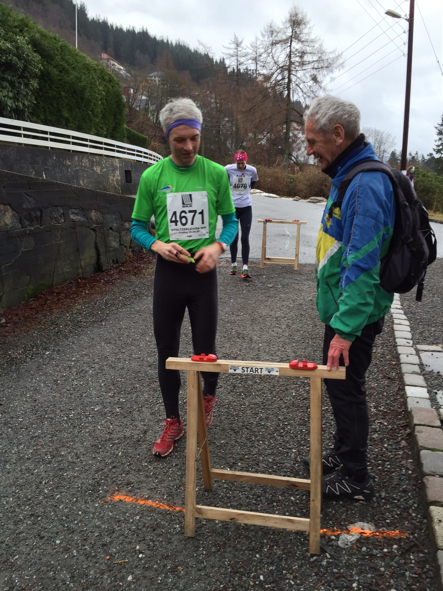 Kjetil Dyrvik var dagens raskeste over nærfjellene, Sandviksfjellet og Fløyen. Han gliste bredt og beskrev løypen som andre omtaler julepresanger. Flott fartsstrekk i starten, sugende bakker før snøen fikk frem teknikeren i den sterke løperen. Etter snøen var det lettløpt, men konkurrentene gjorde at han måtte konsentrere seg om å holde farten høy. Bak Kjetil var det mange flotte dueller. Bjørn Harald noterte seg for sin 70. start for året. Han holdt unna for unge lovende Andreas Bratlie og alltid offensive Tore Klanderud.