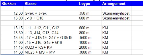 Første start i Skansemyrløpet er kl 12:30. Tentativt tidsskjema: