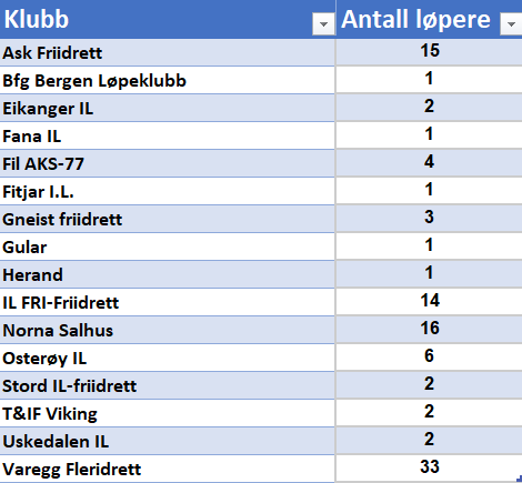 Norna Salhus drivkraften Åsmund Aas Andersen slo selveste Audun Lavik på målstreken for mobilisering av løpere til KM. Norna Salhus stiller med 16 løpere, mens Ask kommer med 15. Il Fri lurer på en fjerdeplass med 14 løpere. Det er så tett at en ekstra innsats med etteranmelding kan snu hele bildet. Arrangørklubben Varegg troner i klar tet og får følelse av storklubb med 33 løpere.