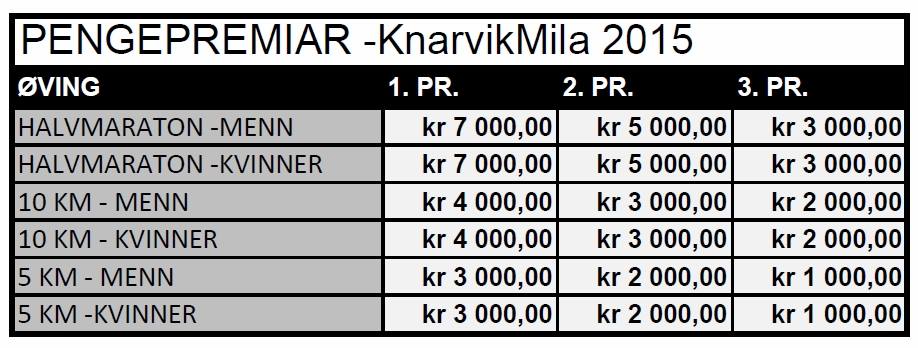 For de som er opptatt av pengepremier så er takstene på Knarvik som følger: