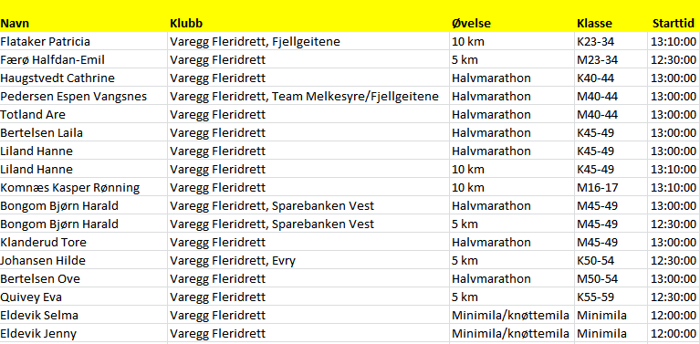 Følgende vareggløpere figurerer på startlistene: