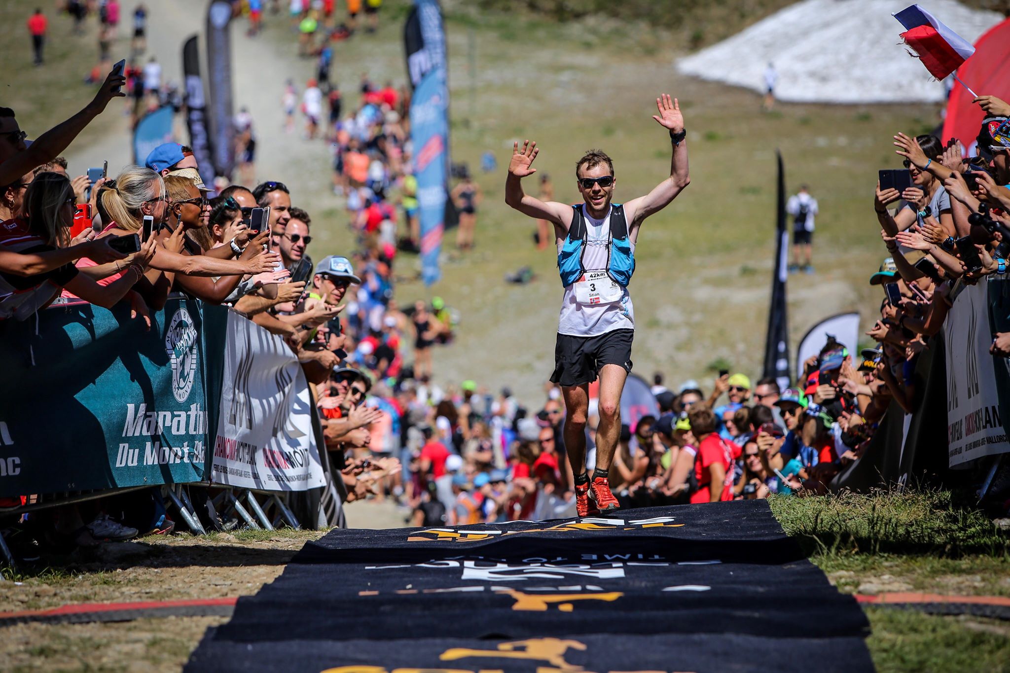 Stian Angermund-Vik leverte en knallsterk avslutning på søndagens Marathon du Mont-Blanc. Cola i magen og en flaske kaldt vann over hodet hadde magisk effekt. Stian våknet til dåd i varmen og forserte fra 5. til 3. plass på de siste 2 kilometerene. Kraftig varme er ikke blant Vareggløperens favoritt forhold og det gjorde utfordringen ekstra tøff. Kudos også til Strava Roger. Han forbedret seg fra 5:27 ifjor til 5:10 iår!