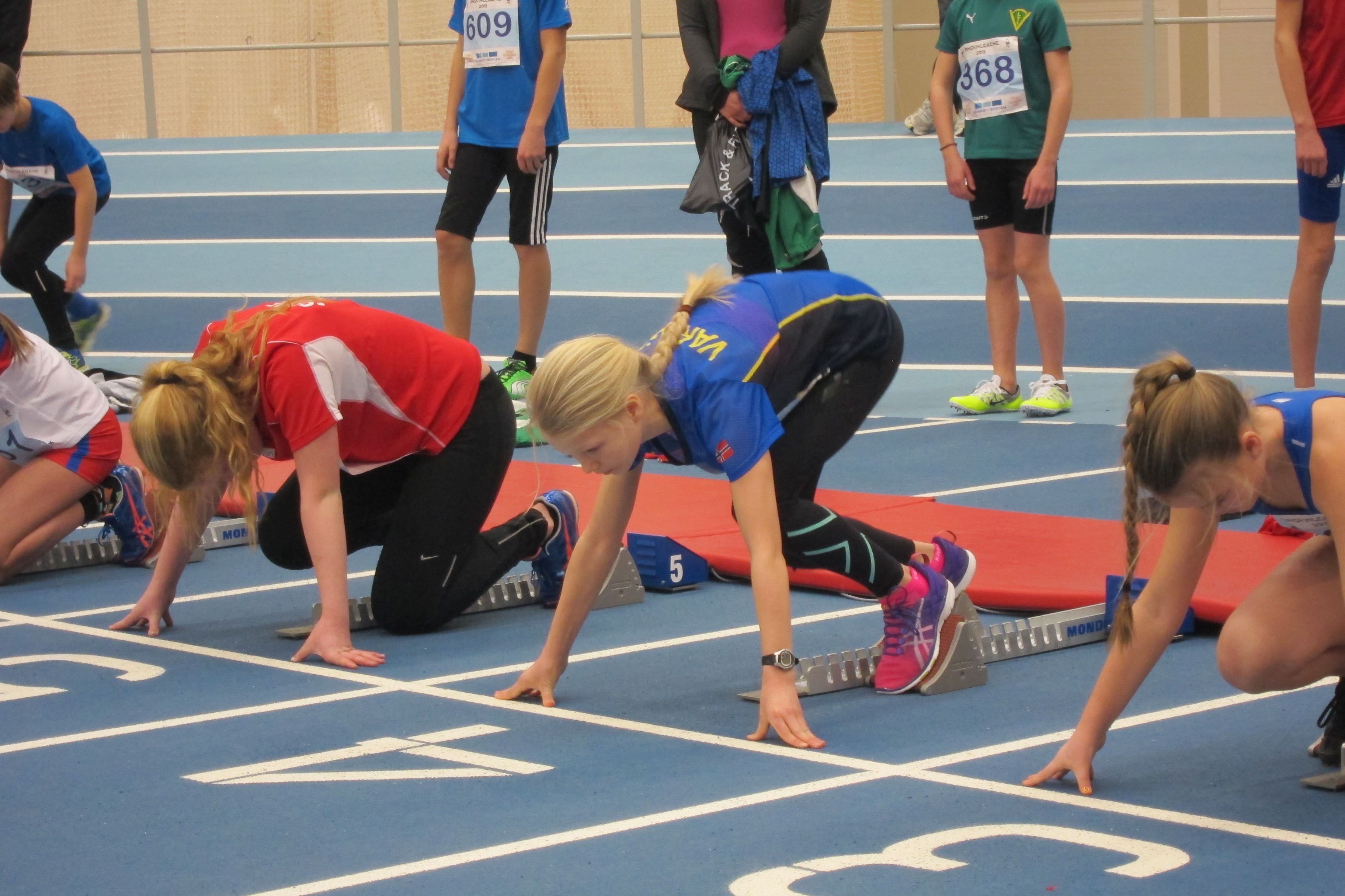 Strålende innsats av vareggløperne i Leikvang Friidrettshall lørdag formiddag. Brorparten var debutanter på innendørs kunststoffdekke og i et stevne med stor ståhei. Jentene var som ventet raske og offensive. De større guttene hadde en durabelig duell der debutanten Andreas Bratlie viste styrke i avslutningen og fikk et poeng på Vareggs store allrounder Trygve Andresen.