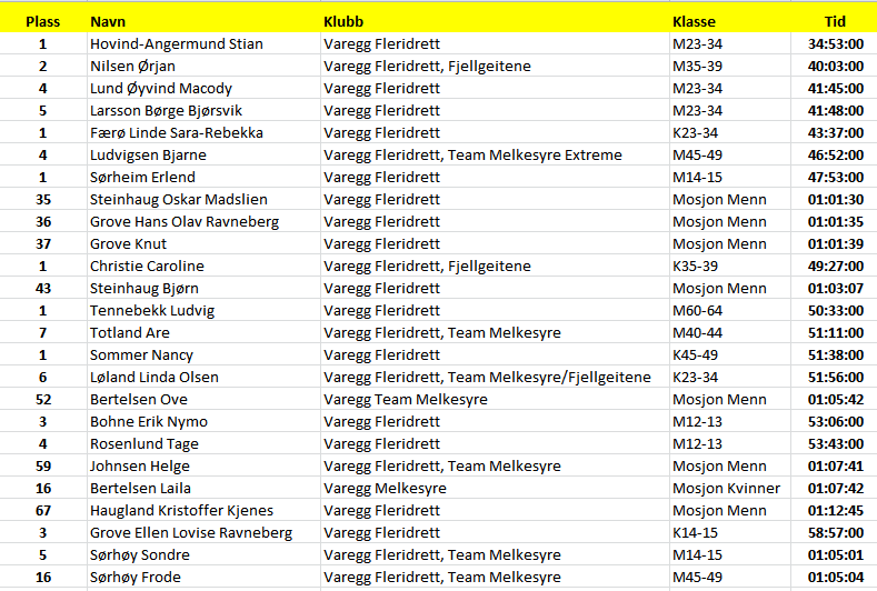 Sara-Rebekka Færø Linde og Caroline Christie la beslag på henholdsvis første og tredjeplassen blant damene. Nancy Sommer var også godt fornøyd med å kunne returnere til Sandviken som klassevinner. Lind Olsen Løland presset Nancy helt til døren. Prima levert også av ungjenten Ellen Lovise Ravneberg Grove!