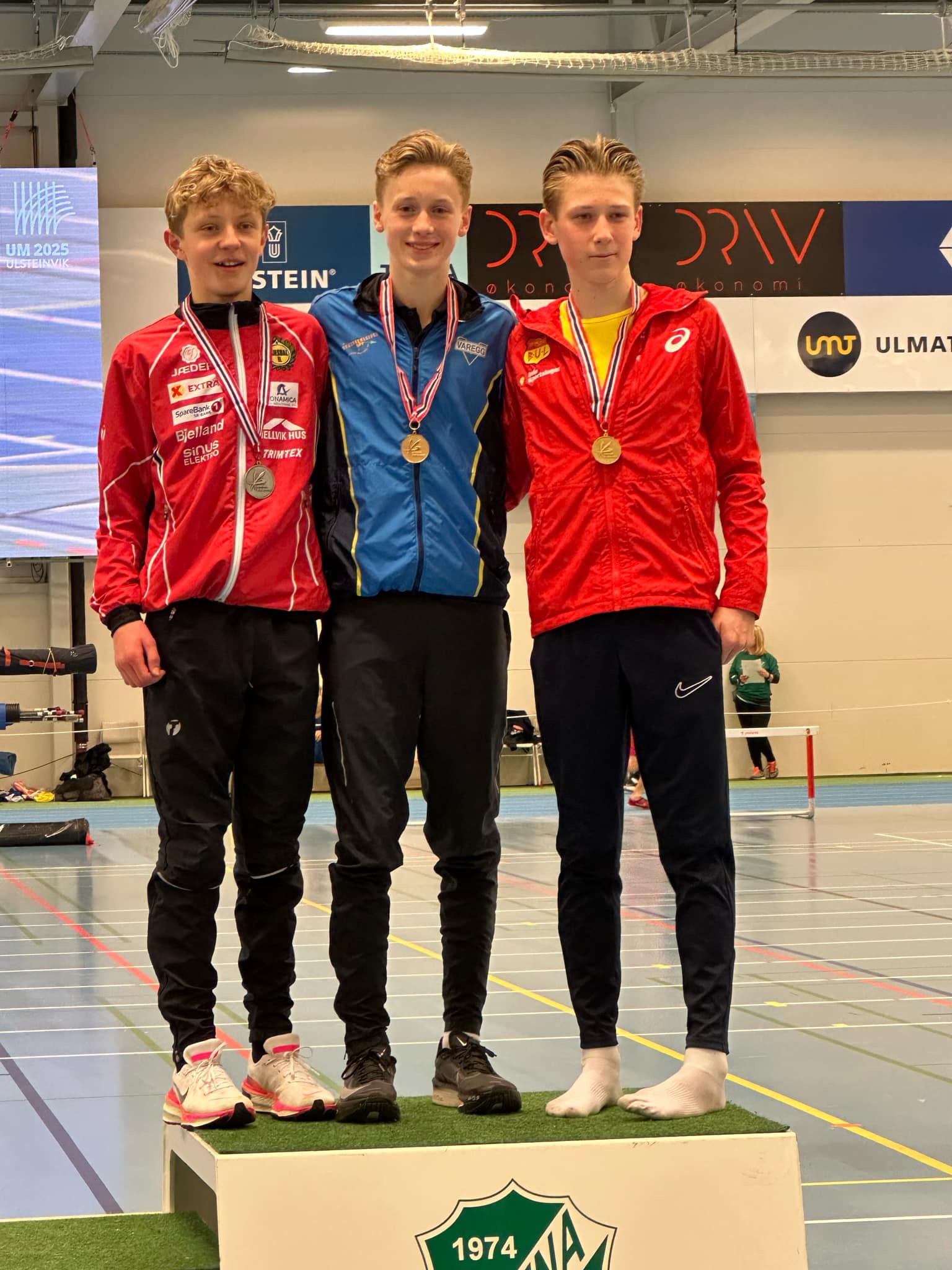 Allerede fredag kveld kunne vi melde fra Ulsteinhallen: "Vi kan gratulere Ludvig Færø Linde med UM-gull på 1500 meter. Varegg-gutten debuterte som mesterskapsløper. Han gikk bestemt til verket. Konkurrentene måtte tidlig gi opp ryggen til Ludvig. Sterk!"