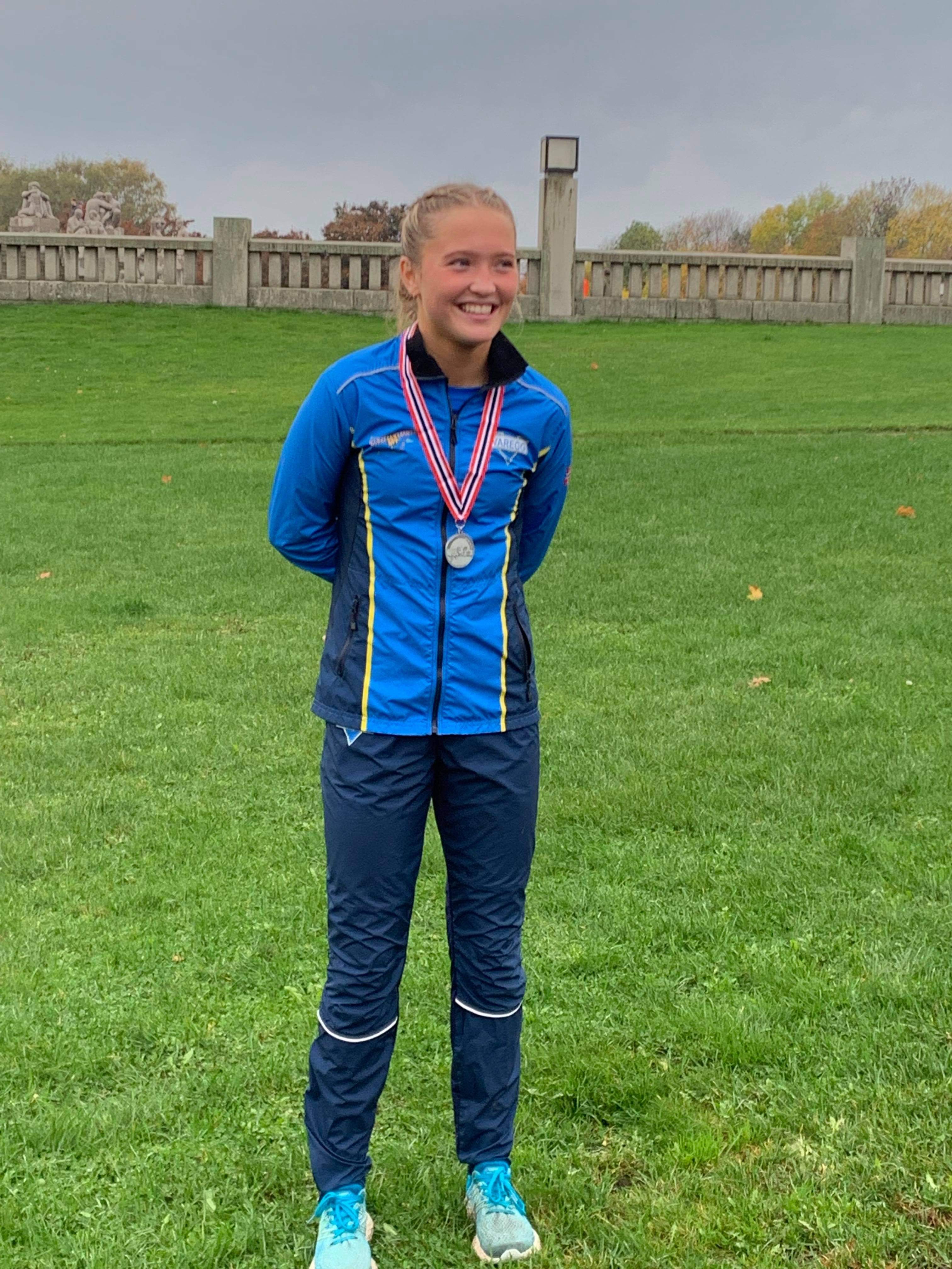 Thea var først ut og søndagens første rapport fra Frognerparken meldte om medalje. Thea fortsatte i samme offensive stil som i tidligere mesterskap denne høsten. Hun løper forrykende i mesterskap. Idag ble det UM sølv i terrengløp lang løype (4km). Gratulasjoner og applaus!