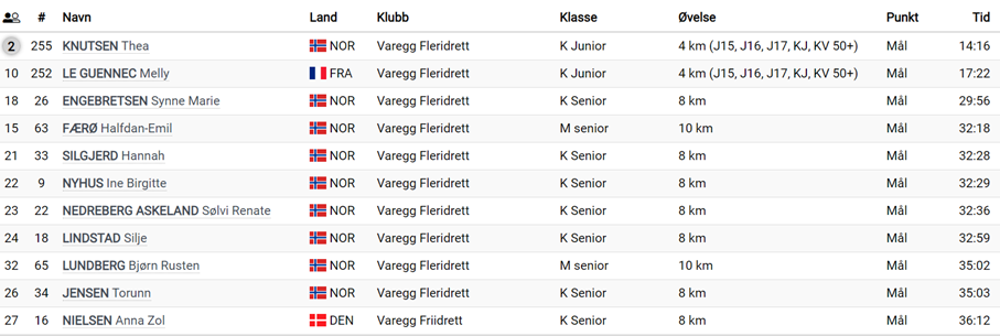 Varegg hadde 11 løpere til start og over mål. Juniorene løp 4 kilometer, mens i seniorklassene løp kvinnene 8 og herrene 10 kilometer. Thea Charlotte Knutsen sikret seg sølvmedaljen i kvinner junior. Synne Engebretsen ble beste vareggjente med 18. plass. I herreklassen var igjen Halfdan-Emil Færø den friskeste fra Varegg med en 15. plass.