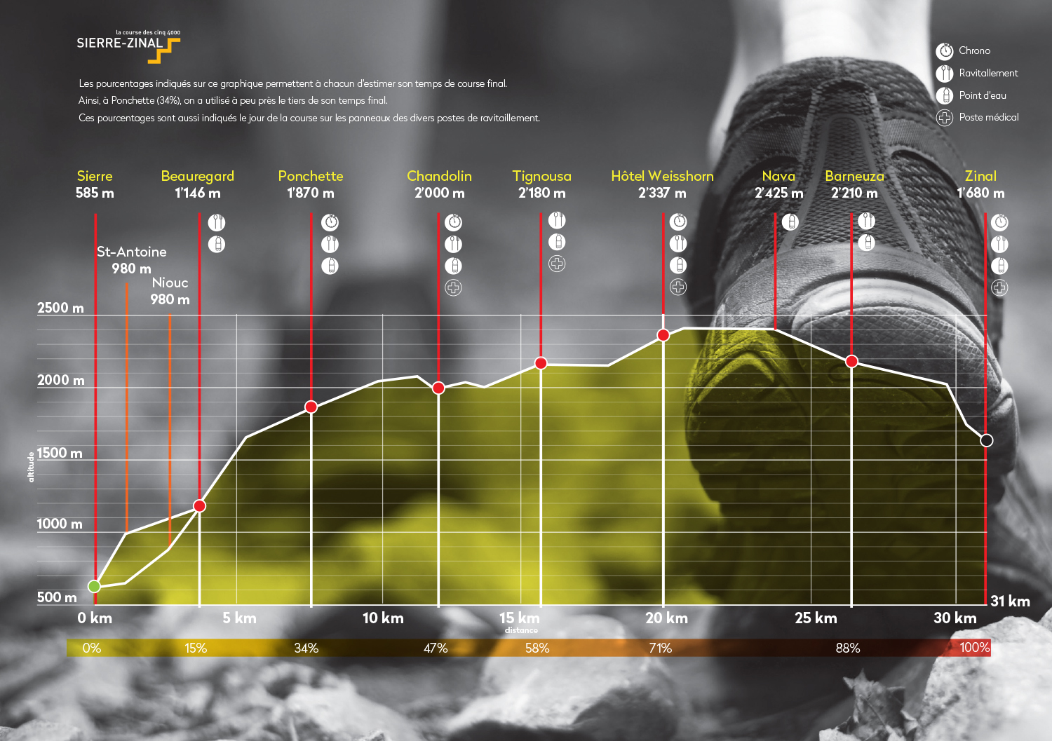 12.august går fjelløpet Sierre-Zinal, i hjertet av Valais-Alpene. Løpet er 31 kilometer langt. Det byr på 2200 meter stigning og 1100 meter nedstigning. Løpet har i mange år samlet enormt mange av de beste fjelløpere fra hele verden.