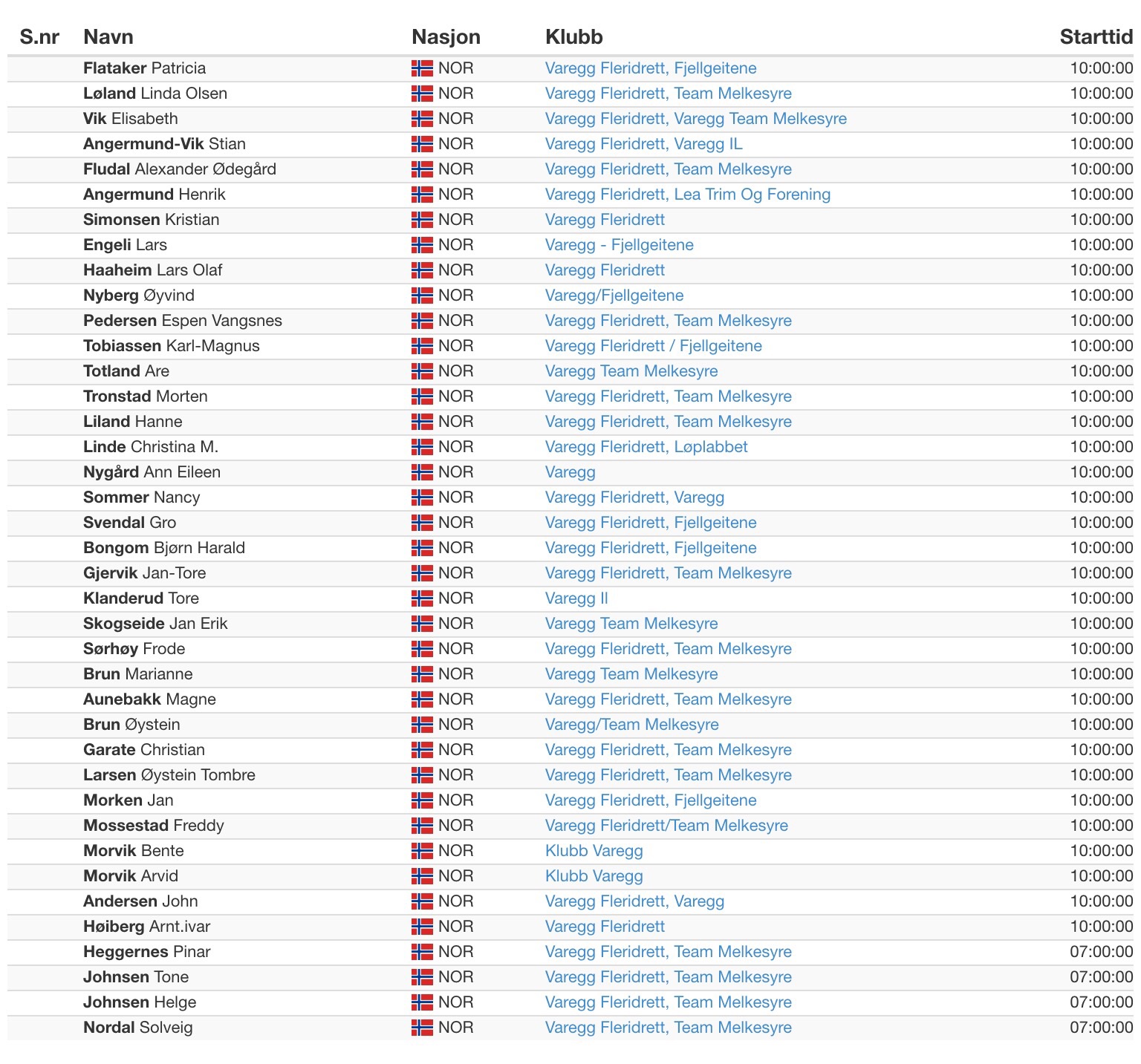 Varegg stiller med en imponerende stor gjeng. Det er også mye som tyder på at løperne er godt forberedt. Vi ønsker alle sammen lykke til og x-fingrene for fine fremganger.