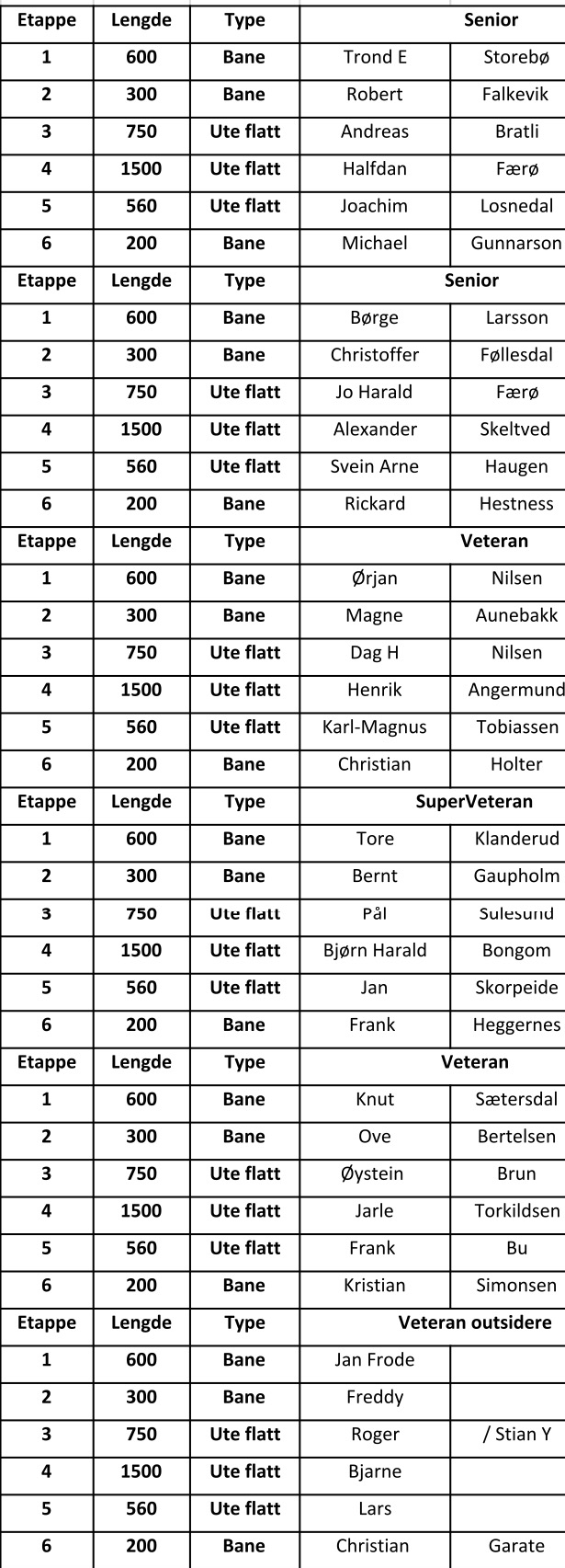 Lagene justeres inn mot løpsdagen i forhold til tilbakemeldinger og for å få klasseplasseringer til å passe (senior, veteran og superveteran).