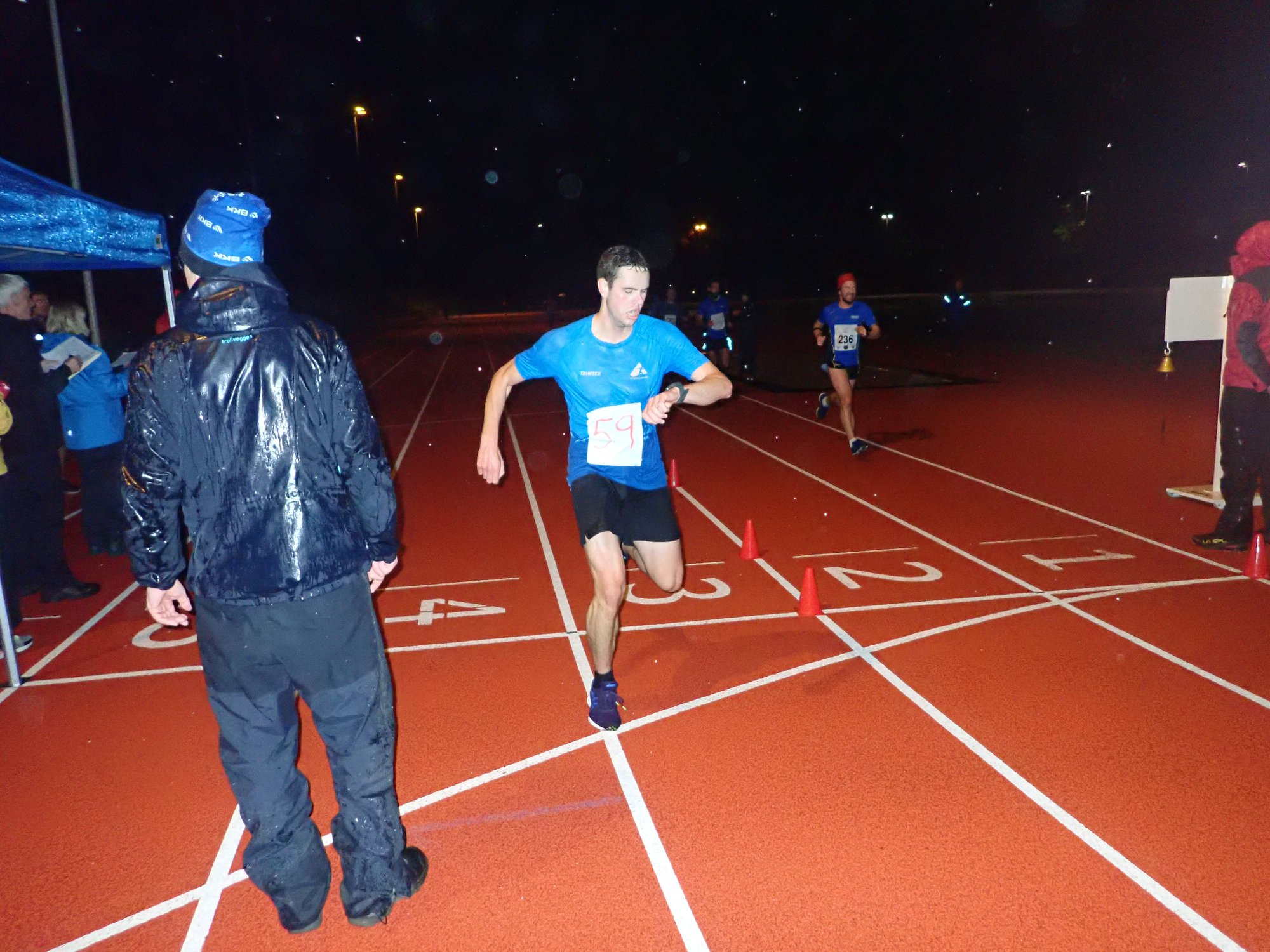 10.000 meter er en tøff distanse, men kan også være herlig hvis du treffer med tempoet. I duskregnet var det flere løpere fant den vidunderlige flyten. De formelig suste de siste rundene. Det var brede smil og god stemning etter målgang for begge de to heatene. Kondis.no sin utsendte klaget litt over lysforholdene, men syntes ellers at det meste var helt prima på Skansemyren. Ole Garmannslund imponerte stort med storfine 32:39,1, mens Nikolas Jon Aarland viste at han er på gang igjen med 33:48,7. Beste jenter var Anja Kleiven Sætre og Anita Blomholm.