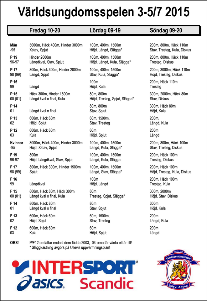 Från och med i år har vi ändrat anmälningsförfarandet för Världsungdomsspelen. Nu registrerar Ni själva era anmälningar via www.trackandfield.se