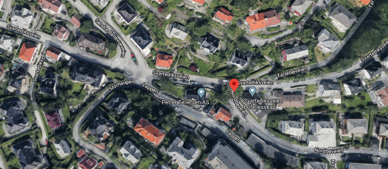 Her er lokaliseringen av start og mål - treet i krysset Svartediksveien - Norbøveien.