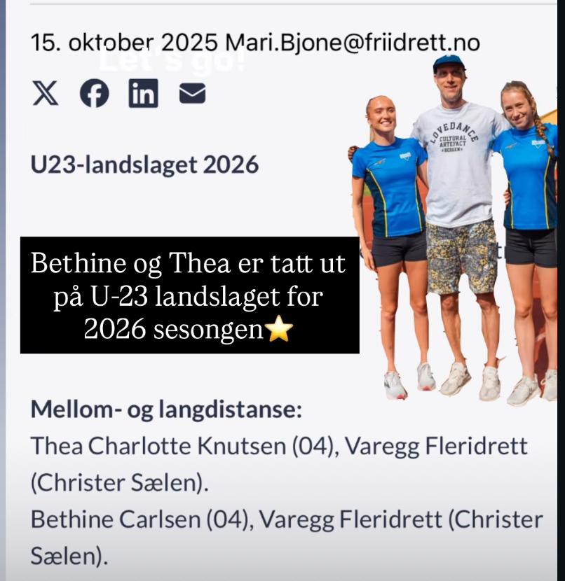 Fra friidrettsforbundets oversikt over U23-landslaget for 2026 har vi klippet følgende: