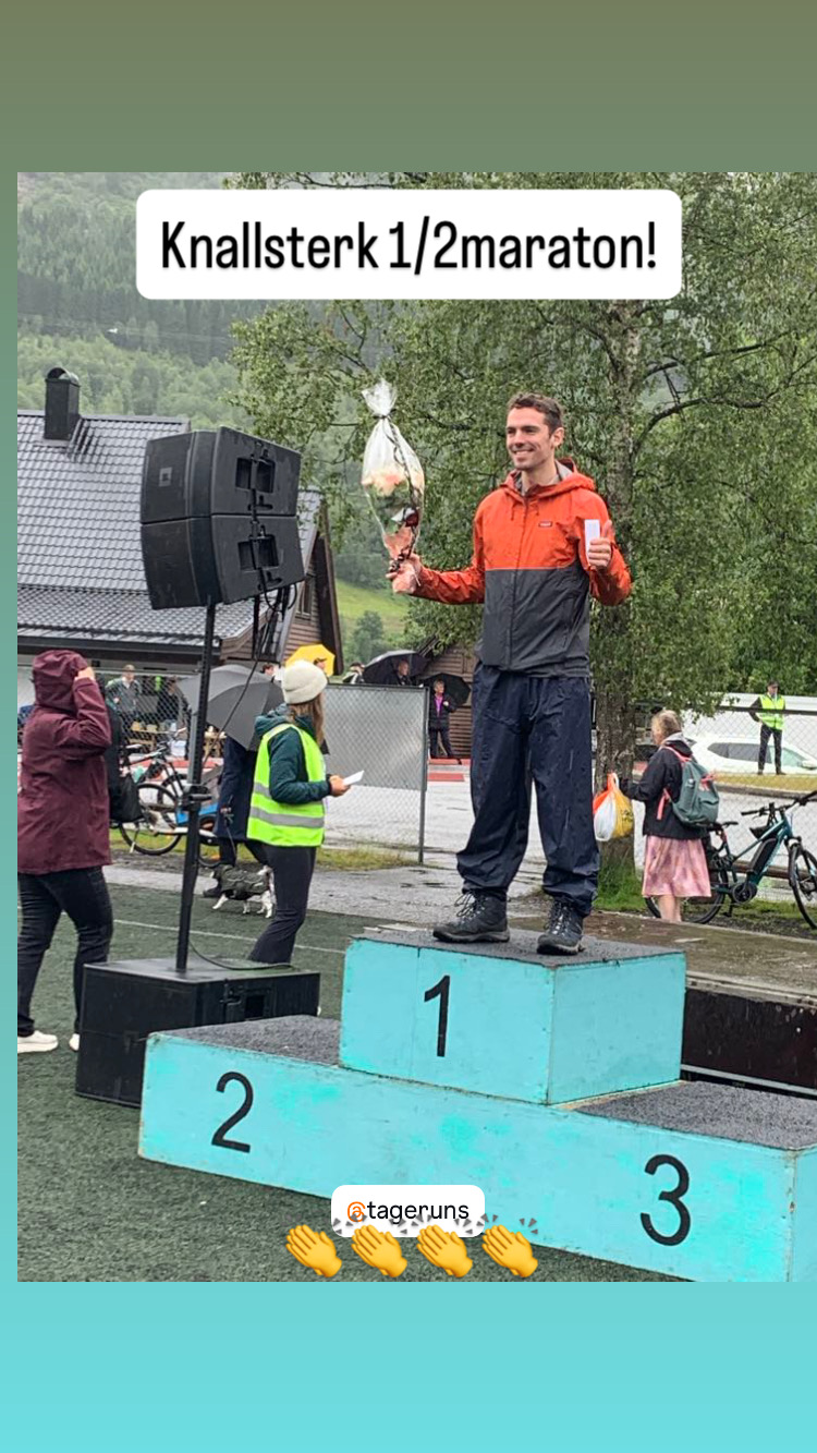 På den halve distanse var det 10 løpere fra Varegg. Her imponerte Tage Augustsson stort. Han fikk tiden 1:06:42. Det er pers og den tredje beste tid i Norge så lang i år.