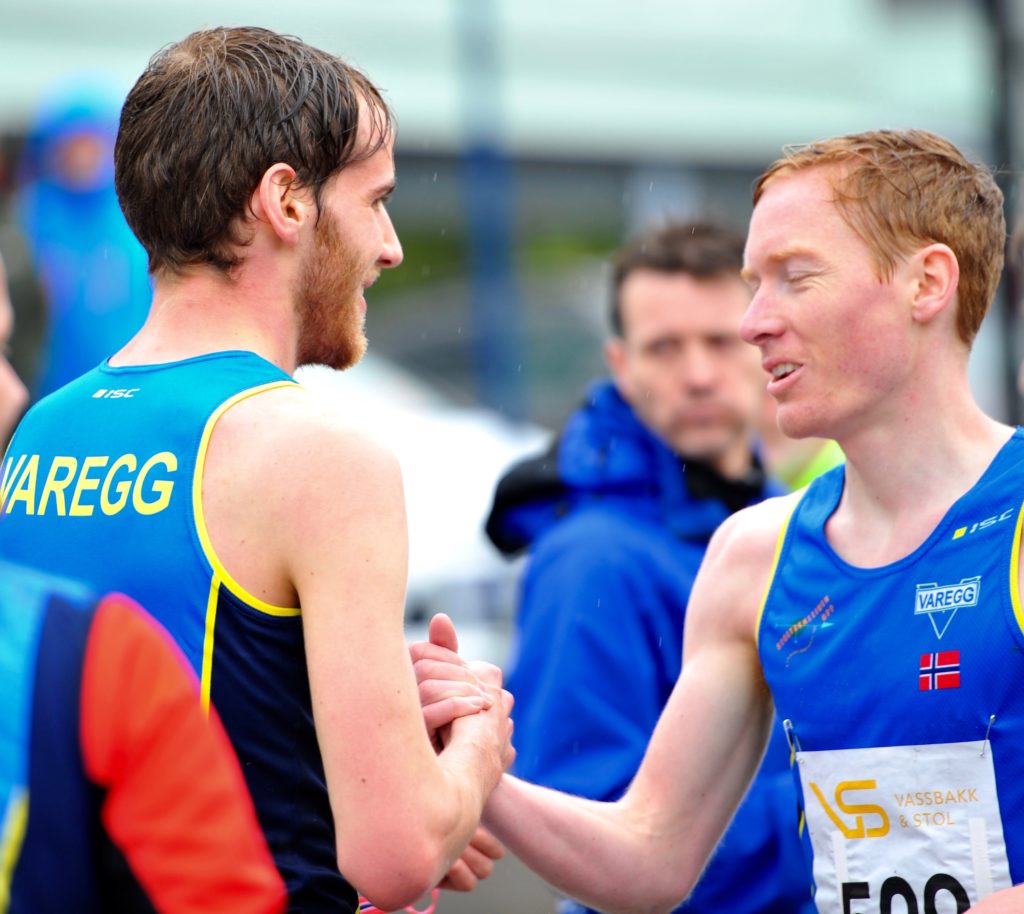 På 5-kilometeren leverte Halfdan-Emil Færø løping av høy klasse. Etter det friske løpet til Fløyen lørdag, var det flere som tvilte på at det var saft igjen i leggene til Halfdan. Tvilerne tok grundig feil. Vareggløperen fikk utmerket hjelp fra sin skotske venn Scott Stirling. Scott tok grep med en gang villstyringene sluknet etter en litt brå start. Han førte teten i fint tempo til det var 800 meter igjen. Da satte Halfdan inn go-giret, og han fløt inn til finfine 15:03. Scott fulgte på med 15:12.