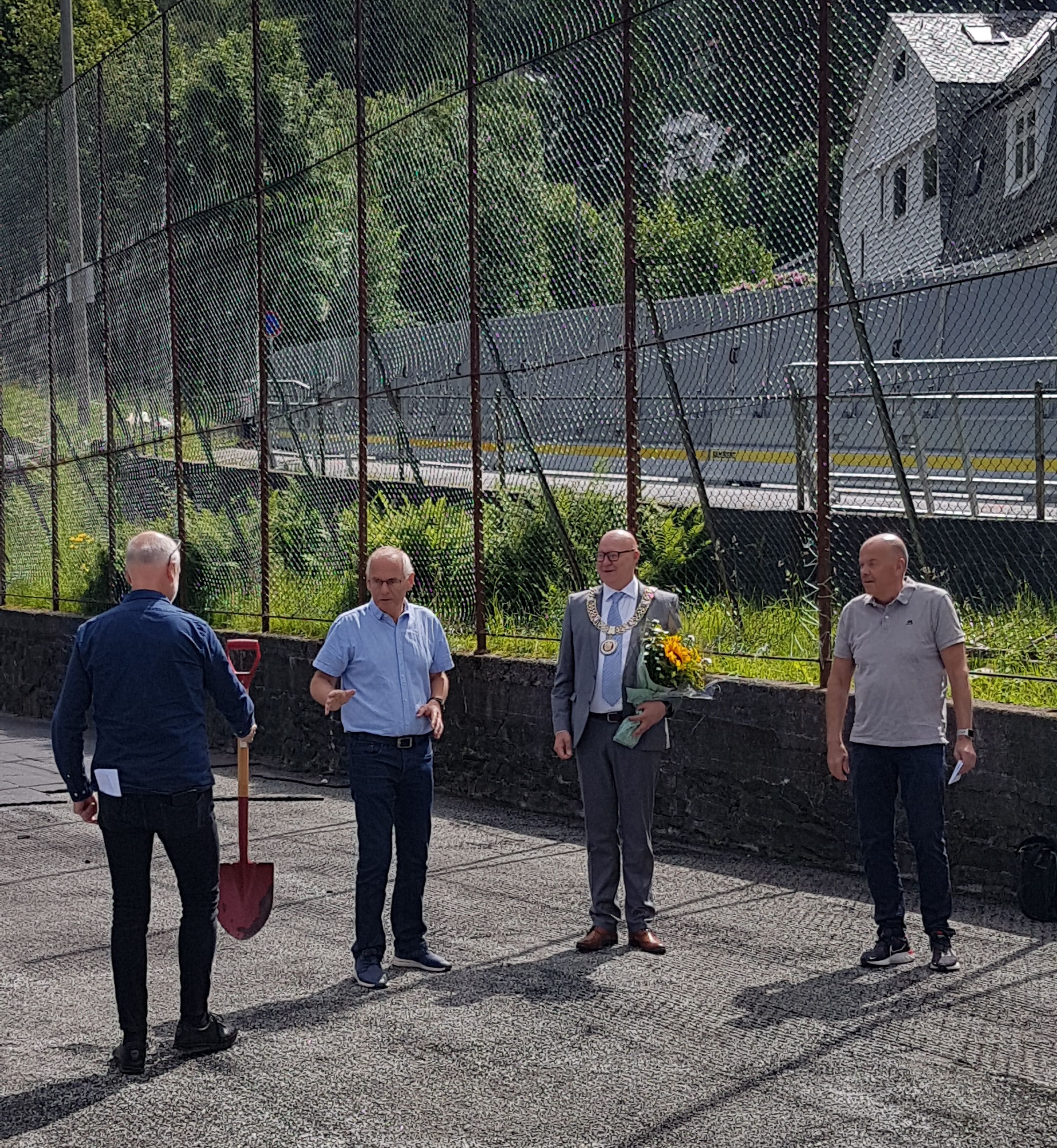 Idrettsrådet i Bergen ved Roar Andersen og Hordaland Fotballkrets ved Knut Berge gratulerte med oppstart byggearbeid og ønsket lykke til.