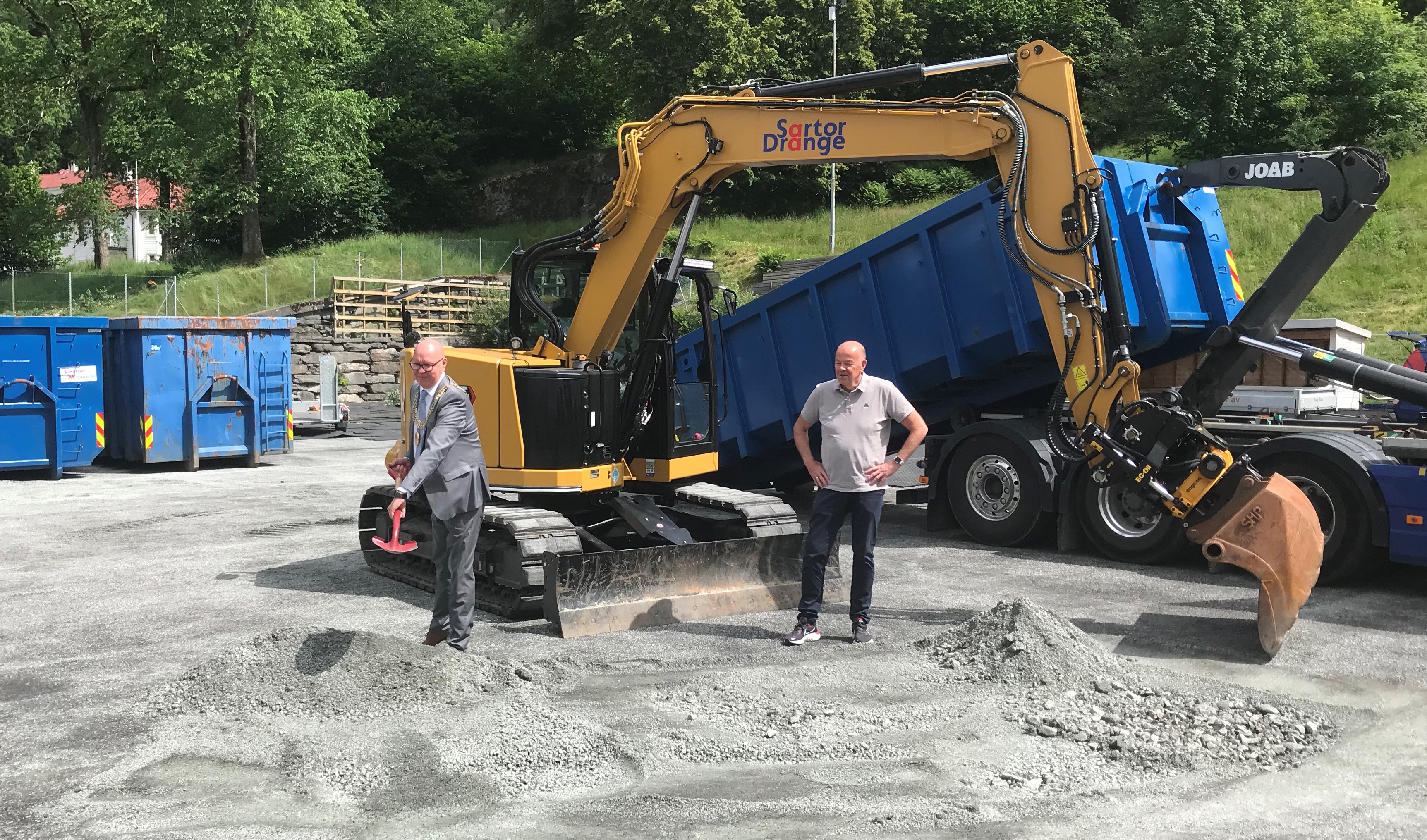 Vi er i gang! Ordfører Rune Bakervik tar første spadetak.