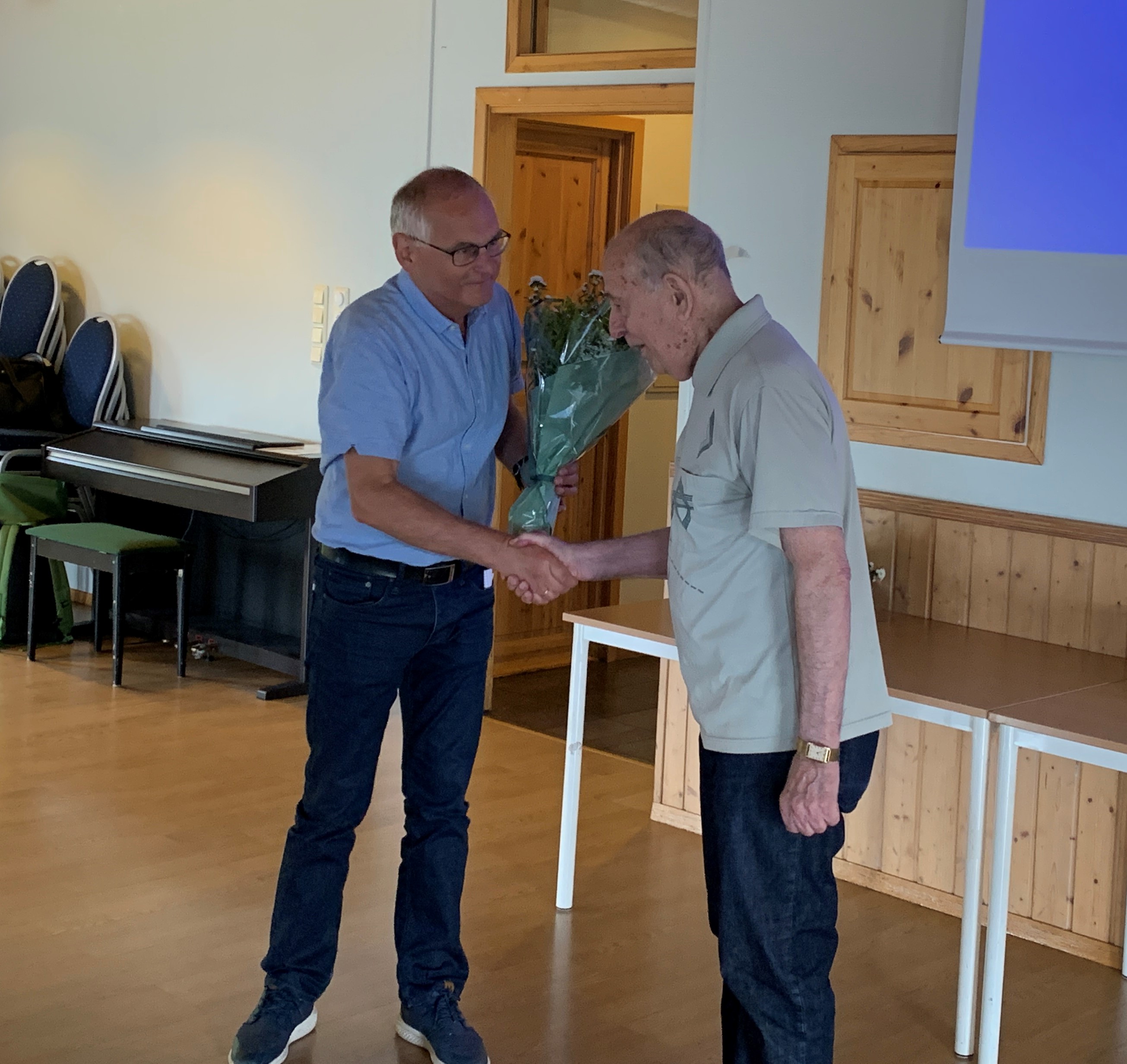 Per Steinsvik, «Varegghallens far», ble takket og hedret med blomster.
